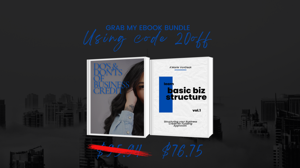 You are getting two ebooks at a discounted rate! This bundle will include Learn the Basic Biz Structure and Do's & Don'ts of Business Credit. Each of these ebooks are starting places for those who are unsure of how to structure their business credit profile appropriately, as well as for those who have begun establishing business credit, but may have potentially missed steps.
